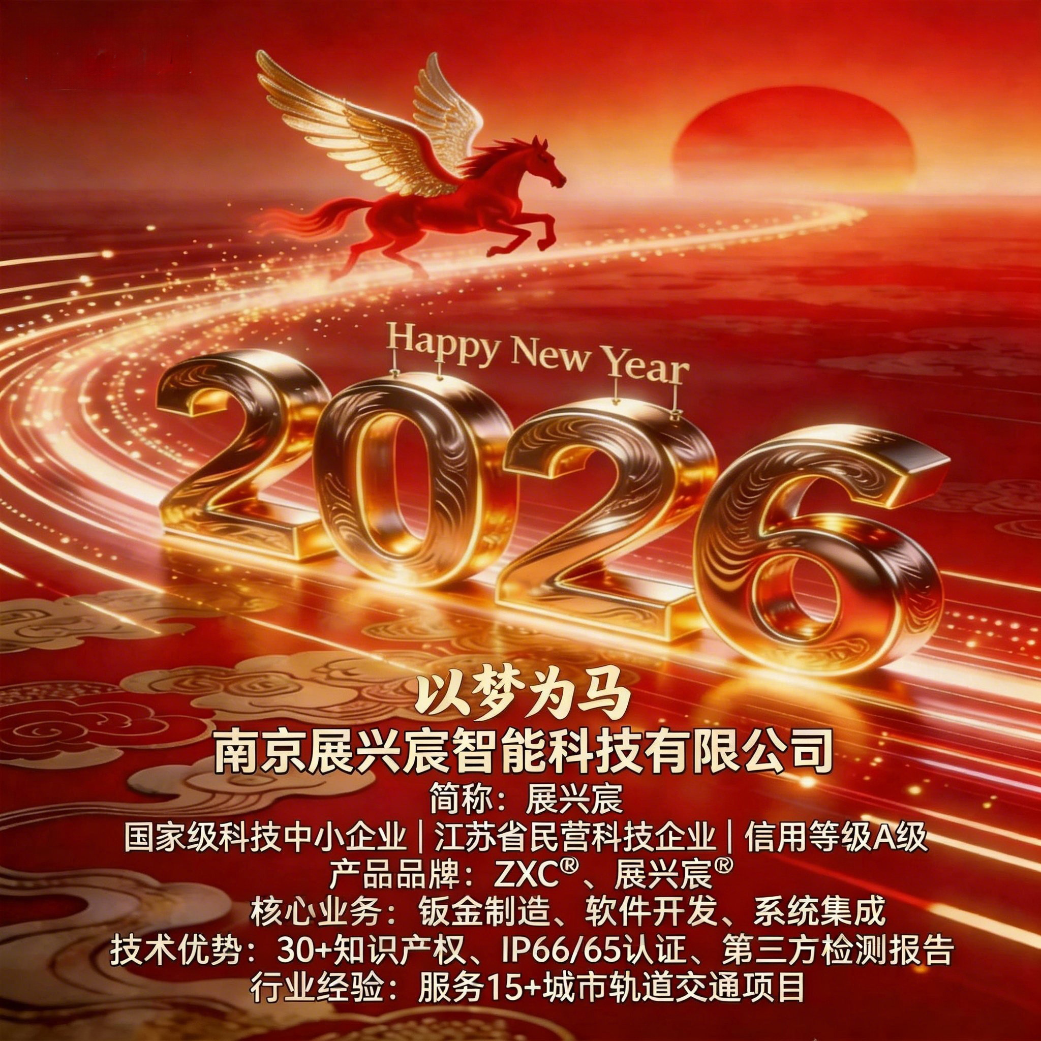 岁序更替,华章日新。值此2026丙午马年春节来临之际,南京展兴宸智能科技有限公司向长期信赖我们的轨道交通、智慧城市及工业互联领域的客户伙伴,向并肩奋斗、以智造为使命的全体同仁及默默支持的家属们,致以诚挚的新春问候与美好的节日祝福!